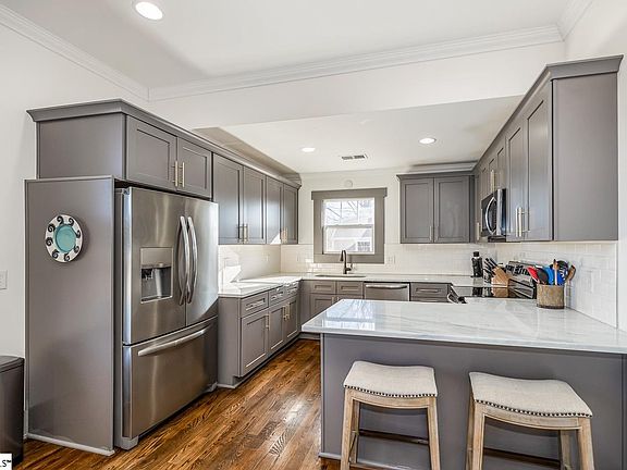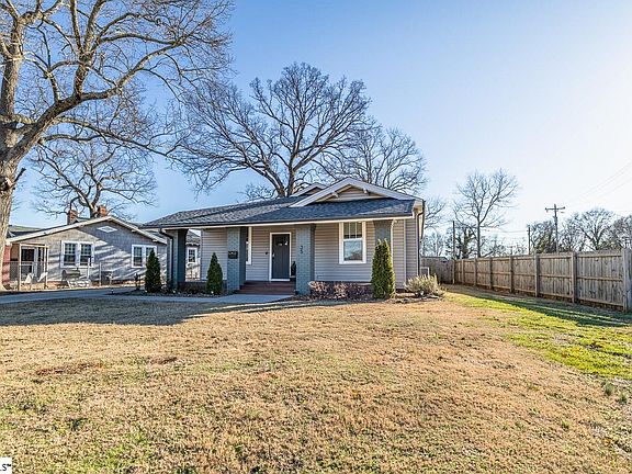 Location, location, location! The darling bungalow is walking distance from West Greenville (also known as the West End or The Village) with it's coffee shops, bars, bakeries, arts community, butcher shop, and even a James Beard Foundation semi-finalist restaurant, The Anchorage. This home is also minutes from Fluor Field, Unity Park, and Swamp Rabbit Trail access. St. Francis downtown hospital is even within walking distance! Constructed in 1945 but FULLY renovated in 2019, there is all the charm of old Greenville with all the modern day amenities. Home sits well off the road with unobstructed views. Walking up to the home you'll notice a large rocking chair front porch perfect for those soon approaching spring days. As you open the front door you'll find yourself in an open living/dining/kitchen space with beautiful hardwood floors, natural light, and 9 foot ceilings. The kitchen comes equipped with a large single basin sink, stainless steel appliances, granite countertops, peninsula style shape with counter-height seating, and lovely modern finishes. With no thresholds or stairs, the transition into the bedroom hallway is easy. The hardwood floors continue through the wide hallway into the primary suite. The large bedroom has a walk-in closet, fireplace, and ensuite bathroom with dual sink vanity and gorgeous tiled shower. The other two bedrooms are spacious and share a large hall bath also with dual sink vanity! As you step back outside you'll find yourself in a fully fenced-in backyard that is flat and usable! A vapor barrier and dehumidifier system has recently been installed by Mt. Valley Foundations. This house truly is move in ready and waiting for you to make it your home.
