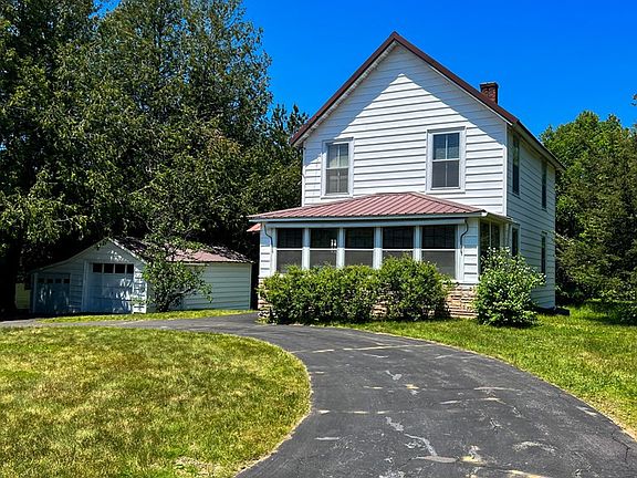 Adorable home with close proximity to the village but no village taxes! This 3 bed 1 bath has a detached garage with deck, and a workshop out back. This home sits on 2 acres of beautiful rolling hills, with many trees bordering the lot offering ample privacy. There is public water and public sewer. Inside this small home has hardwood floors, a 4 season porch, and a basement that walks out to the backyard. Come update this home to your own liking and enjoy the close proximity to Mt pisgah and the stunning views!