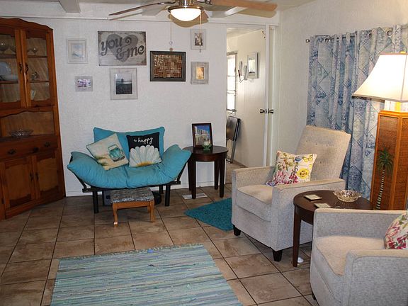 Storage galore, a must-see to understand the quality of this home! Seller is ready to move. This home in Carriage Cove 55+ community has an enclosed garage, screened-in porch and laundry room that makes this single wide home feel like a true double wide. Metal roof, newer A/C (2019), recently renovated guest and master bathroom, spacious kitchen, and additional rooms added on to this 2 bedroom, 2 bath house. Lot rent is approximately $790/month.