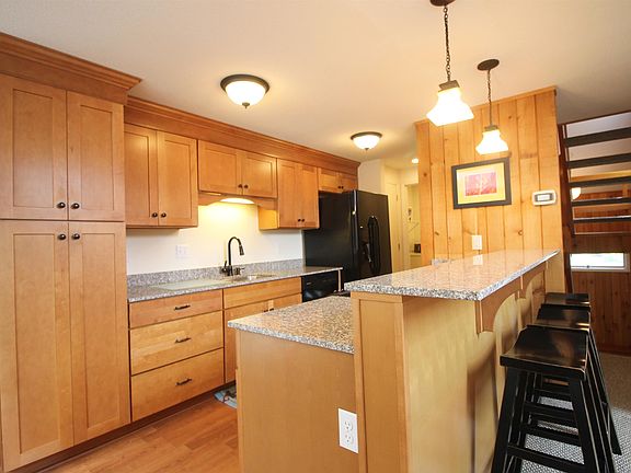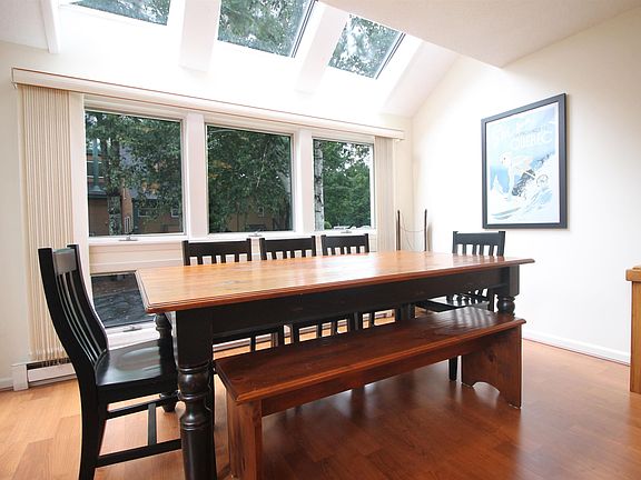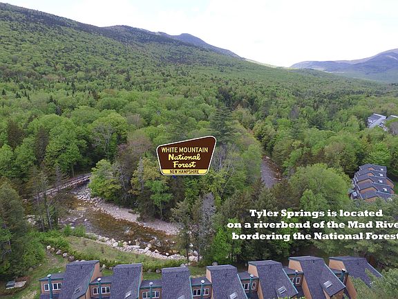 This is a great value! Tyler Spring is one of the most centrally located condo developments in Waterville Valley. Townhouse 46 is an ideal end-unit with 2 parking spaces right at the front door so you can easily pull up and unload. Enter the condo to find a huge mudroom complete with a large storage closet...perfect for ski tuning and/or storing all of your gear. Head up to the living level with the living room, kitchen and dining area all connected which is perfect for entertaining. Warm your toes by the wood burning fireplace and relax after a fun day on the slopes! The kitchen is gorgeous with granite counter-tops, laminate flooring, beautiful fixtures and more. Dramatic cathedral ceilings with southwest facing end-unit windows allow the natural light to pour in the living room making it light and bright! Head up another level to find the primary bedroom suite which has vaulted ceilings which makes a big difference. The lower level is perfect as it can be used as a 2nd living room with a slider out to the backyard... or it can be another bedroom as it has a privacy divider cleverly hidden in the wall. The 2nd and 3rd bedrooms are set up as bunkrooms adjoined with a pocket door so the lower level can currently sleep 6 in beds! Efficiently heated with a direct vent kerosene heater. Tyler Spring Condos are a short walk to Town Square and on the network of hiking/biking/XC trails with very easy access. (WMAC$750trf)