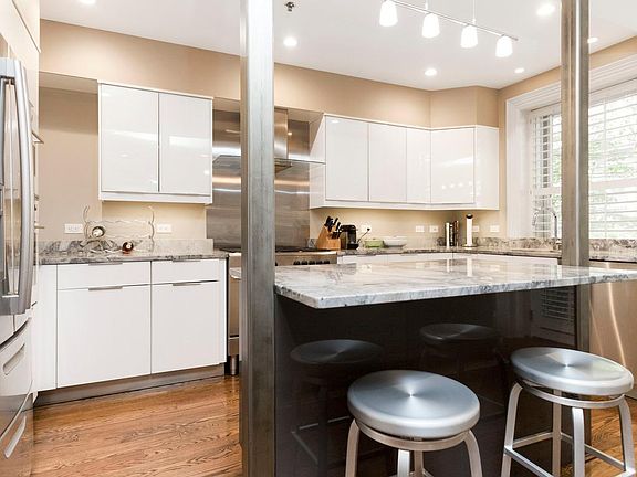 An extraordinary offering at this masterfully restored residence overlooking desirable Union Park. Architecturally designed, this garden level duplex combines old world charm and modern edge, defining living space and attention to detail like no other. This home features 3 bedrooms and 4 full marble baths. The entry level denotes open concept living with private entrance, an elegant bow front living room with fountain views of the Park, a dining room with dramatic adjacent study, a stunning chef's kitchen, a family room with gas fireplace, and discreet full bath. A lovely deck overlooks serene upper and lower patios. Generous closets exist throughout, and on the garden level a full size washer/dryer is cleverly concealed. The impressive master is lavishly appointed including an en suite bath with soaking tub and shower. The airy 2nd and 3rd bedrooms include an en suite and 3rd bath and open to the lower patio with 885 sq. ft. of charming garden beyond. An exercise room completes this remarkable unit. Extraordinary Three Bedroom on Desirable Union Park