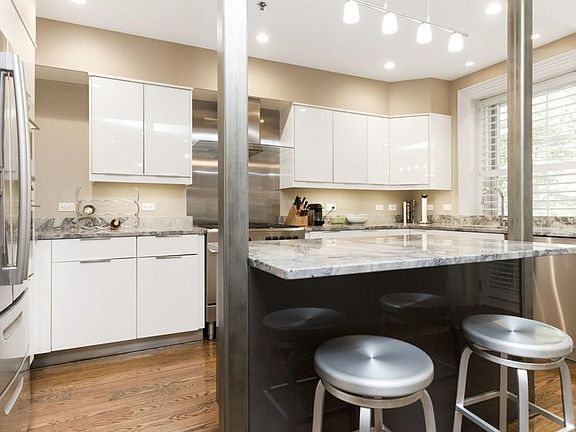 An extraordinary offering at this masterfully restored residence overlooking desirable Union Park. Architecturally designed, this garden level duplex combines old world charm and modern edge, defining living space and attention to detail like no other. This home features 3 bedrooms and 4 full marble baths. The entry level denotes open concept living with private entrance, an elegant bow front living room with fountain views of the Park, a dining room with dramatic adjacent study, a stunning chef's kitchen, a family room with gas fireplace, and discreet full bath. A lovely deck overlooks serene upper and lower patios. Generous closets exist throughout, and on the garden level a full size washer/dryer is cleverly concealed. The impressive master is lavishly appointed including an en suite bath with soaking tub and shower. The airy 2nd and 3rd bedrooms include an en suite and 3rd bath and open to the lower patio with 885 sq. ft. of charming garden beyond.