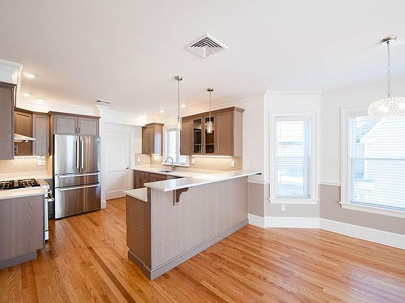 Sunny sophisticated Duplex apartment with Three bedrooms and 3 Full baths New to the Market! Located in a two-family home, on a very desirable tree-lined street in Watertown. The quality of construction and workmanship is 2nd to none! Just Extraordinary. Beautifully renovated 2nd & 3rd floor duplex apartment contains 3 bedrooms and 3 full baths. Great location close to public transportation. Apartment features include sunny open living/dining/kitchen area, hardwood floors, central air conditioning, replacement windows, Custom closets, custom lighting, skylights, private deck and 2 balconies area. Beautiful custom gourmet kitchen includes quartz counter tops, stainless steel appliances. Laundry located within the unit. Two car garage, and plenty of open parking spaces. Common garden/patio area (patio to be completed in spring). You must take a look to fully appreciate this gem. No students, nor pets. Easy access to shopping, employment, Mass Pike, and various mass transit options.