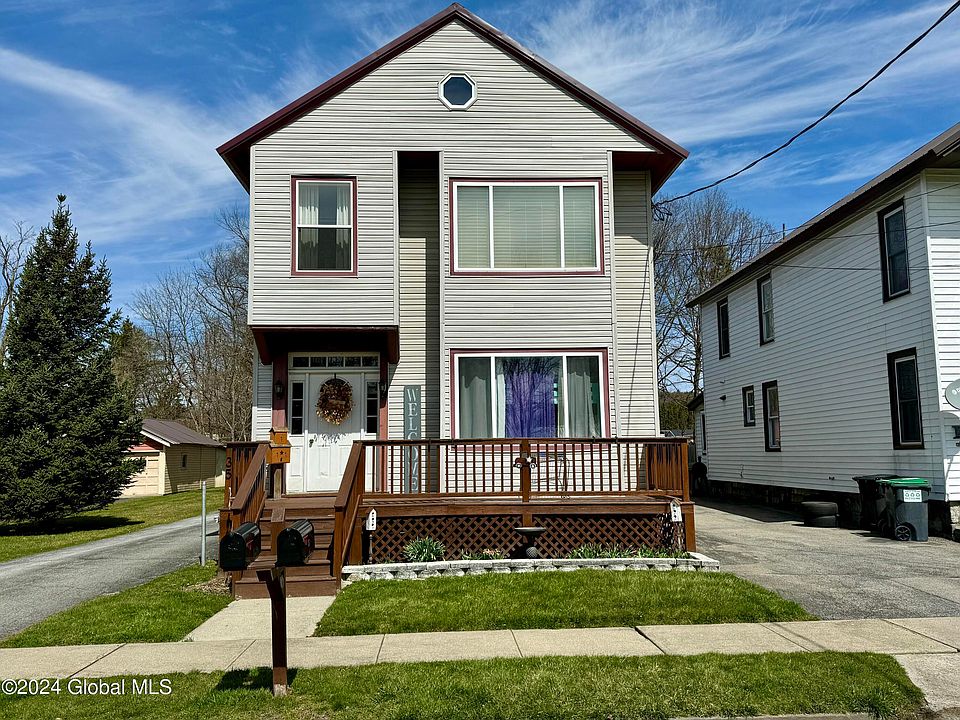 Just pack your bags all the work is done! This well updated & maintained 2 family is an ideal owner occupied home. The current owners flat features an oversized eat in kitchen with island & high end appliances. 2 bedrooms, large living room, foyer, laundry room and full bath with jetted tub and stand up shower. Central air, bright windows, pocket doors, hardwood floors & sliding glass door to oversized deck. The second flat features 2 beds, 1 living room, kitchen & back porch. Exposed brick and hardwood floors. Bring the toys theres a 24x40 heated garage w/ 2 sheds. Public water & sewer, natural gas furnace, whole house water filter/softener. All this sits on a 150x65 lot in the Fonda- Fultonville School District. Directly across from a park that runs a full city block. A must see!