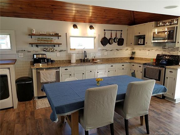 Meticulously maintained home conveniently located just minutes from major highways, restaurants, and shopping. Enjoy the outdoors this Summer! Housatonic River public boat launch is just 5 minutes away. BBQ on your private patio that overlooks the expansive backyard, or enjoy a beverage while relaxing on the covered front porch. Spacious living room is anchored by an impressive wood-burning fireplace, bay window overlooking the backyard, and 2 storage closets. Living room leads to the formal dining room/ bonus room. This is a great space for a home office, large mud room, or study. Updated eat-in-kitchen is appointed with glass tile back-splash, new flooring, granite counters, stainless steel appliances, ample cabinet storage, and sliding glass doors to the patio. Updated full bath. Laundry is conveniently located on the main level. 1st floor bedroom with ample closet storage. 2nd floor bedroom with new wall-to-wall carpeting, dressing area, and sitting area. Truly a master retreat! Private, paved driveway leads to the oversized 2 car garage. Above the garage is over 600 sq ft of additional space for a workshop. This space has great potential! Already equipped with electricity and windows. Additional features include well pump 2020, central air conditioning, and recessed lighting.