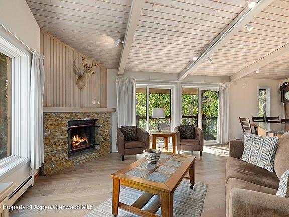 This charming 2-bedroom, 2-bath Woodbridge Condominium is a fantastic find! Located on the top floor, this corner unit boasts vaulted ceilings and breathtaking views of Snowmass Mountain and the valley. The well-appointed kitchen features granite countertops, and you'll appreciate the convenience of in-unit laundry. Step out onto the deck, equipped with a gas grill and seating, perfect for enjoying the stunning scenery. With ample storage space and access to community amenities like a private pool, hot tub, sauna and fitness room, this condo offers both comfort and convenience. Plus, its prime location on the shuttle route makes it easy to access the slopes and nearby shopping centers. It's an ideal home for both living and adventure!