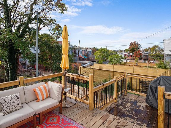 3 BR and 1.5 Bath Solar powered/Electric Car Ready house with stunning, large bay windows, unique original tin ceilings, and a renovated deck for entertaining and grilling. A south-facing wall of windows means tons of natural light. Electric fireplace, French door refrigerator, gas stove. Solar Panel roof which means you have zero or even negative electric bills most months of the year. Electric Car port, with secure off street parking. Powder room on the first floor. Dual sink bathtub/ shower - 2nd floor Primary Bedroom has beautiful bay windows with room for a king bed, dresser, office, and container store renovated closet system with drawers and hanging storage in the primary bed closet Second BR with room for 2nd office setup and sofa or queen bed Third BR - perfect for kids nursery or office. Ceiling fans in all bedrooms and living room. Pets on case by case basis. Washer/Dryer in unit. Off-street parking available for rent The neighborhood: Located on a quiet tree-lined block. One of the few blocks in DC with houses only on one side of the road and ample parking on the block. Short Walk to: New Reservoir District (rec center and park) Harry Thomas Rec Center and pool Brand New Edgewood Rec Center which includes a full weight lifting room free to all DC residents Eckington Yards (Brooklyn Boulders, Cinema DraftHouse) Bloomingdale Restaurants (Red Hen, Big Bear) One-year lease. Utilities (water, gas, electricity) are covered by the tenant but are very low given the solar panel roof.