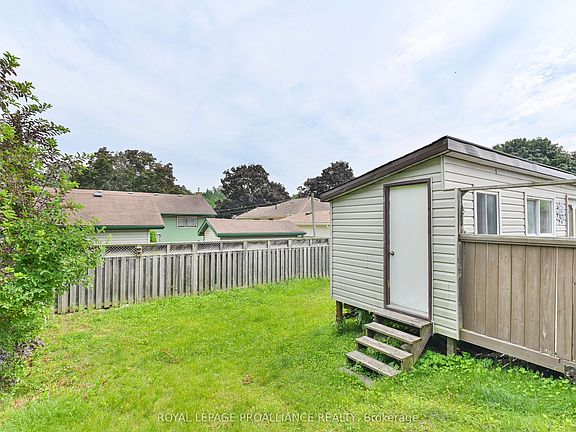 **NEW PRICE AND IMMEDIATE POSSESSION** Take another look at this adorable, affordable bungalow in a desirable Trenton neighbourhood! Everything you need including a smart layout, with wide stairs and a bright foyer midway between the main floor and the lower level, giving access to the huge rear deck and fenced yard. This nicely finished home features 3 bedrooms on the main floor and a full bathroom, as well as an updated kitchen. Downstairs in the full basement you'll find a rec room, laundry,and a second bathroom which features a lovely soaker tub. Perfect for escaping with a good audio-book. Outside, the sloping, fenced yard is perfect for games as 'you wish', a bit of gardening, or simply relaxing. A large 2-level deck and XXL garden shed offer privacy, storage,and plenty of level space to host your outdoor BBQ get togethers. And the location? Minutes from CFB Trenton, parks, shopping, and all the essentials, yet tucked away in the tight knit community.