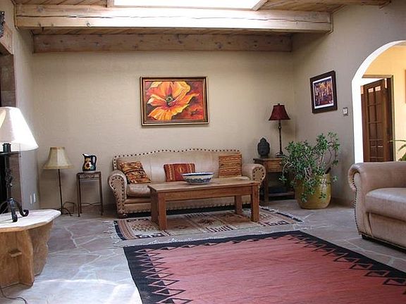 PRICE TO SELL!!! This spacious passive solar home sits on 1.24 acres and features 3 bedrooms, 2 full bathrooms, a large living room, sunroom, open concept kitchen and dining room with additional room off dining room for an office or other living space. The home has beautiful cherry wood floors in all the bedrooms and polished flagstone throughout living and kitchen areas. The artistic tile work in both bathrooms are a must see! Large 2 car garage is completely insulated and has colored concrete floors, new windows and electric baseboard heating. The garage has its own entrance and private courtyard. This home is very close to El Dorado community center, pool, tennis courts, soccer field, grocery store, schools and more.