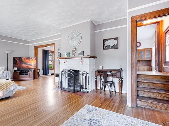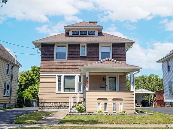 Classic, Elegant & Updated! This 4-bedroom, 1.5-bath home w/detach. 2-car garage is a gem on a coveted neighborhood street. Reflecting pride of ownership, it effortlessly melds charm, character, & function. Features include cedar shake, natural wood trim & windows, a cozy fireplace, hardwood floors, & a great front porch characteristic of early 20th Century design. The kitchen features many original cabinets, island, quartz countertops, & SS appliances. Tons of natural light throughout the home thanks to beautiful windows incl. glass block in the basement. Formal dining room, back den/office, half bath 1st floor, & brand-new, gorgeous full bath w/all bedrooms on 2nd floor. Enjoy the stamped concrete patio out back & the upper deck overlooking the yard, as well as the tidy, heated garage too nice to park your vehicle in! The immaculate basement & large walk-up attic space provide more storage or potential living space. Blacktop driveway. Roof, AC, & Furnace 10; HWT 2; Washer/Dryer <1 year. Moments from the NYS Thruway, Batavia's amenities & attractions; easy commute to surrounding areas. Get ready to fall in love with this beautiful, quality home!