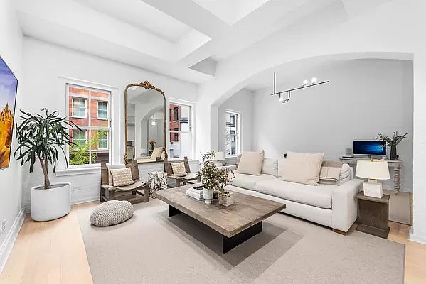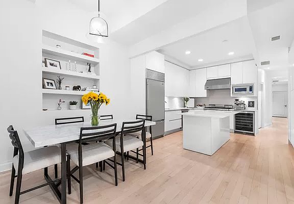 Sleek modern design nests within prized historic bones in this impeccably renovated three-bedroom, two-bathroom full-floor loft on one of the most beautiful blocks in historic, NW Tribeca. A key-locked elevator delivers you directly to this stunning residence featuring soaring beamed ceilings, painted brick art walls and refinished wide-plank hardwood floors. In the expansive great room, oversized north-facing windows flood the space with natural light, while an elegant archway provides a natural divider for distinct seating and dining areas. The open chef's kitchen serves as the inviting heart of the home with a massive center island, gleaming white lacquer cabinetry and premium stainless-steel appliances by Sub-Zero, Viking and Miele, including a vented gas range, dishwasher, built-in microwave, and wine refrigerator. A wall of closets and cabinets provides excellent pantry storage, while built-in niche shelving showcases art and serving pieces. At the end of the hall, the king-size owner's suite beckons with southern exposures, two large custom closets and a renovated bath filled with floor-to-ceiling large-format stone tile, a walk-in shower and floating trough-sink vanity. Another south-facing bedroom is placed next to the well-appointed guest bathroom, and the third bedroom could also serve as a spacious home office. An in-unit vented washer-dryer, radiant heat floors and central air conditioning add comfort and convenience to this flawless Tribeca loft. Originally constructed as a stable building in 1907, 35 Vestry Street was converted into a boutique condominium in 2000. Residents enjoy video intercom, key-locked elevator entry, and basement storage. From this ideal location on a serene Belgian-block street, you'll enjoy easy access to the Tribeca Historic District's best dining, shopping and outdoor space. Hudson River Park offers 500 acres of waterfront outdoor space and recreation. SoHo and Hudson Square are nearby, and 1, A/C/E, J/Z, 6 and N/Q/R/W trains, excellent bus service and CitiBike stations put the rest of the city within easy reach.