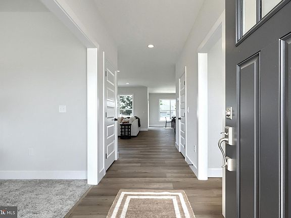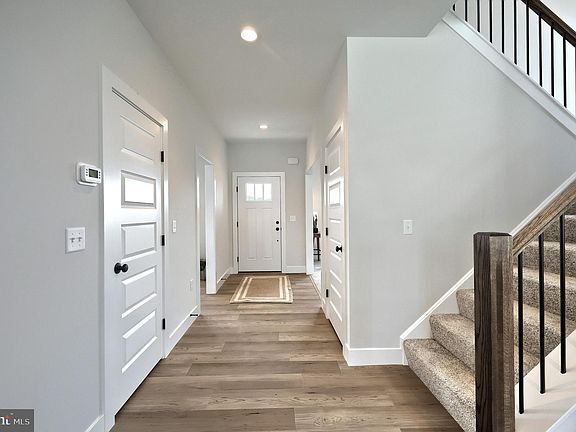 This beautiful home with a welcoming front porch includes a 2-car garage with a large mudroom entry. The first floor boasts 9’ ceilings and stylish vinyl plank flooring in the main living areas. To the front of the home is a convenient, carpeted flex room that can be used as a study, living room, or other versatile space. The kitchen is well-appointed with quartz countertops, a tile backsplash, stainless-steel appliances, and a large pantry. The sunny dining area provides access to a rear patio. Open to the kitchen, the comfortable family room is warmed by a gas fireplace with a stone surround and box beam mantel. The 2nd floor owner’s suite features an expansive closet and a private bathroom with a tile shower and double bowl vanity. Adjacent to the suite are 3 additional bedrooms, a full bathroom, a spacious rec room, and a convenient laundry room. (The floor plan shown represents the standard layout for this home plan. Actual layout, features, and options may vary. Construction plans take precedence over artwork. Please see the Community Sales Manager for details.)