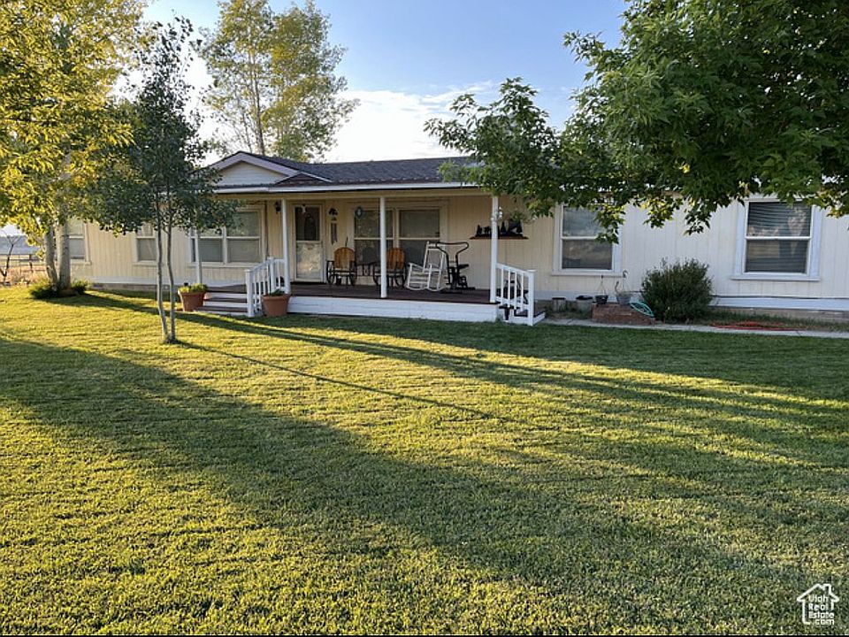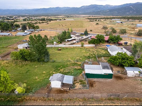 Large kitchen and gorgeous Horse Property. 4 beds, 3 baths, extra-large garage. Beautiful porch views of the Horseshoe Mountain. Step out through the French doors onto a beautiful redwood deck, perfect for relaxing or entertaining. Make the appointment today and buy this rare property! 60' round horse corral included, 2 pastures separated by 6' horse fence. Catch the sunset here. Well built home with 2x6 wall construction, corners metal strapped, workshop/garage size 36'x24'x9' tall, 8' tall garage door opening, Front porch 24'x9 1/2', hay barn 36'x12' attached to horse barn, tack and saddle shed 12'x14' attached to horse barn. 2 shares of water with the house and 6 available for purchase separately for irrigating. Square footage figures are provided as a courtesy estimate only and were obtained from homeowners' house plans. Buyer is advised to obtain an independent measurement. Make the appointment today.