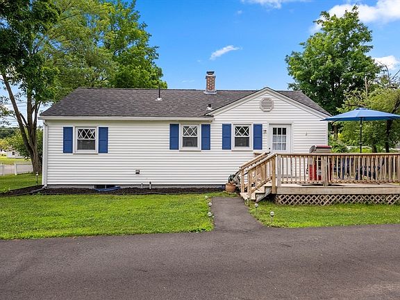 This property is ideal for anyone looking for a comfortable and cozy home, whether you are a first-time homebuyer, downsizing, or working from home. The location is perfect for those who value peace and quiet, while still being close to all the amenities that the city has to offer. With its updated features and move-in ready condition, this Ranch style home is a must-see! The spacious living room boasts a bay window and ceiling fan. The kitchen features granite countertops, SS appliances, tile floors, and a roomy dining area. The 2 large bedrooms are accompanied by updated bathrooms, the primary bedroom features an en-suite and attached office/sitting room with private entrance and side porch. The large yard offers plenty of space for outdoor activities and relaxation on the large deck. The partially finished, heated basement includes additional living space, laundry and storage. This home also features beautiful hardwood floors, new driveway, chimney, roof, gutters, & XL 12x20 shed!