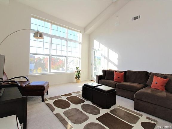 Luxury downtown 3 Bedroom + Loft/4th Bedroom with views overlooking Mill River Park and fountains. Corner unit, flooded with natural light from the 20+Ft ceilings in the living room and bedroom; 9+Ft ceilings throughout the rest of the unit. The open floor plan is ideal for comfortable living and entertaining! Washer/dryer in unit, balcony, and lots of storage: two of the closets are walk-in california closets and the unit has a 5x6 storage room adjacent to the front door. Sparkling granite/stainless kitchen has dishwasher, gas range, & breakfast bar that opens to your family room. Fabulous amenities include concierge, community room & fitness room, private courtyard with gazebo, grills and picnic area. Gated and covered garage parking, reserved parking space and a floating second space. Enjoy all that Mill River Park has to offer; walk to shops, restaurants, offices, and Stamford Train Station. Easy access to I-95. Pet friendly building. Don't miss this unit!