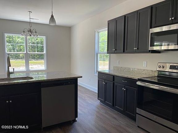Seller is offering $2,000 credit and preferred lender is offering $1,500 credit on this New Construction 3 bedroom 2 bath with bonus room home located in small peaceful neighborhood in country on large .63 acre lot. Home features open floor plan, kitchen island, granite counter tops, stainless steel appliances, no fridge, LVP flooring in living spaces. 30 year architectural shingles, 2 car garage, concrete driveway, brushed nickel finish fixtures, ceiling fans in living room and master Bedroom double bowl vanity in master bath, 120 SF rear patio. House is complete and ready to move in!