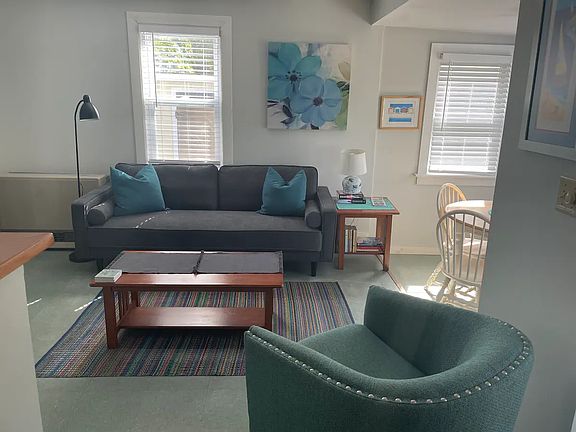 AVAILABLE October 1 through April 30, 2026 $1850 (includes water & internet): 1 bed/1 bath cottage rental (500sf) ~ Discover your perfect getaway in this charming standalone 1-bedroom cottage nestled in the heart of Easton's Point! Step inside to find a delightful beachy blue kitchen, complete with a window that opens up to your own private patio ideal for morning coffee or evening relaxation. The cozy layout features a small dining area adjacent to the inviting living room, perfect for entertaining or unwinding after a day of beach adventures. Retreat to the intimate bedroom, furnished with a comfortable queen bed for a restful night's sleep. With convenient laundry facilities on the premises, this cottage offers all the comforts of home in a picturesque coastal setting. Don't miss your chance to experience this cozy hideaway! Complete application and background checks required; so sorry, no pets. -- Owner pays for water and internet. Tenant pays for all other utilities.