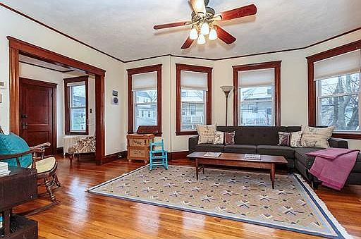 Charm and character abound in this oversized light-filled condo in superb walkable location! Open floor plan is perfect for entertaining: spacious living room with bay window opens to a gracious dining room w china cabinet and large eat-in kitchen with pantry. Bedrooms and bath are privately situated off side hallway. 7x9 entry foyer provides plenty of space for coats & gear. Beautiful high ceilings and hardwood floors throughout. Replacement windows, newer gas boiler, gas stove, and updated bathroom. Private back porch, shared yard, basement storage & laundry. Up to two pets permitted per condo docs. Steps to bikepath, playgrounds, 87, 88, & 89 buses, groceries, and less than a mile to movies, coffee shops, restaurants & T in Davis Sq. Great opportunity! Open house Sat and Sun 12:30 - 2; offers requested Tuesday Feb 14th @ noon.