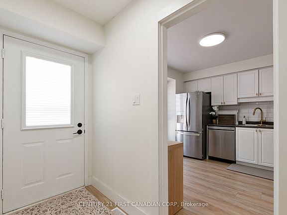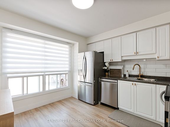 Unlock your dream lifestyle - A modern Haven awaits! Seize this rare opportunity to own this breathtaking two story townhome that has been professionally renovated from top to bottom. This move-in-ready, 3 bedroom, 1 1/2 bath offers timeless elegance making it a one of a kind at an unbeatable value. The new kitchen features crisp white shaker cabinets, new countertop, finished with striking gold handles and faucet with new stainless steel appliance and hood fan. Immerse your self into the open-concept main floor featuring large dining area with a striking gold crystal chandelier and family room bathed in natural light, sleek blinds, light oak vinyl plank flooring, new pot lights and elegant shiplap feature wall. The private rear patio is your perfect escape for relaxation surrounded by lush greenery. As you make your way up to the second floor you will find a fully renovated 3 piece bathroom, large master bedroom and 2 generously sized bedrooms with all new flooring through-out. As you head to the transformative finished basement, your personal retreat offering additional living space. The large window allows plenty of natural light, beautiful shiplap feature wall, spot lights, new vinyl flooring creating a place to relax and enjoy. Additional features include brand-new air conditioner, owned hot water tank and furnace. This place is sure to impress. Book your private showing today.