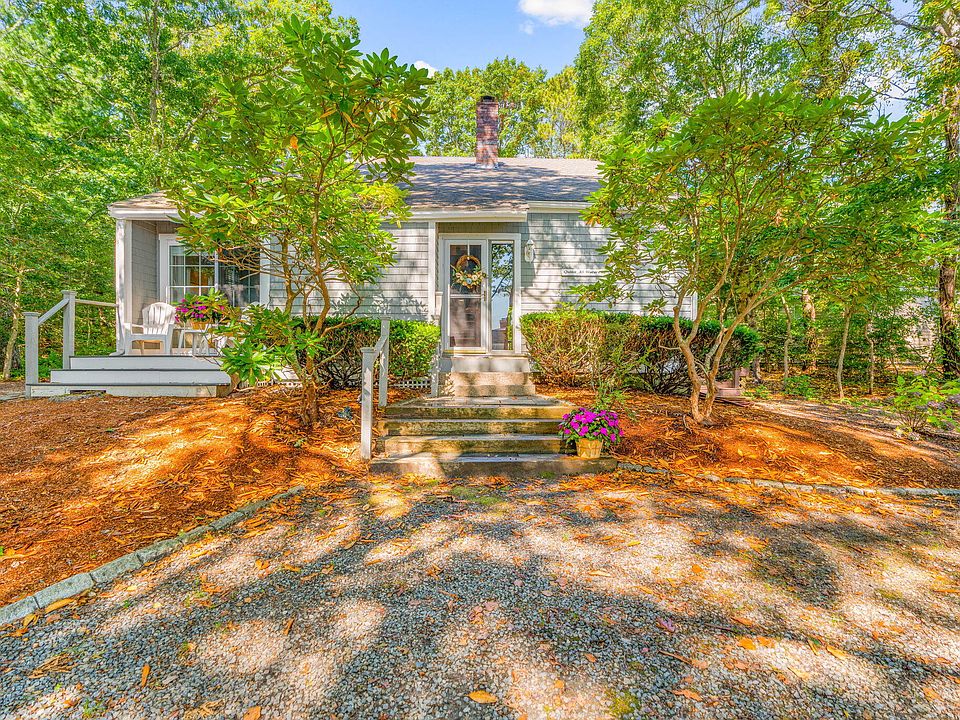 Charming home tucked away on lovely lot in Bright Coves, offers convenience to neighborhood reserve area to drop your kayak to paddle out to the beautiful Popponesset Spit. If you prefer to walk to the beach, you are within a mile. This three bed home is a classic style seen throughout New Seabury, designed by architect Claude Miquelle. It provides nice living space on the main level, as well as an open loft upstairs with a peek of water across the road. It it a great opportunity to do your own updating and customizing to suit your personal needs. The ample decking and spacious yard provide great options for outdoor entertaining Primary with bath on the first floor, along with small office area and pantry off kitchen, while upstairs offers 2 additional bedrooms for family or guests. Full basement provides ample room for storage! Convenient to all New Seabury and Mashpee have to offer.