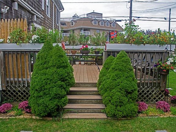 LOCATION, LOCATION, LOCATION A "Front Row Seat" on desirable Wellington Ave. You will enjoy your summers here. Quick access to Kings Park, the Harbor, Thames St and downtown. Home updated in 2014. Good-sized 3-4 BR, 2-1/2 baths and is sure to please. The eat-in kitchen has white quartz countertops and cherry wood cabinets, stainless appliances, tile floors with radiant heat. The living room is large with sliders to 16x16 deck overlooking pretty fenced-in yard. Off-street parking. Summer lush gardens and even a Koi Fish pond accent the yard's landscape. First floor is a 4TH BR or Office. The second floor offers Primary BR Suite w/full bath, double closets, dressing area, laundry and the 2ND BR and full bath. You will love the "roof deck" which is accessed by the 3RD BR with views of the Harbor and Kings Park. Great home for full-time or vacation. Turn-key rental for investors. Hardwood floors, tile with radiant heat, mini-splits in each room offers air conditioning or heat.