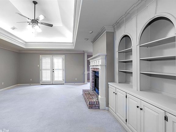 Beautifully appointed home with open floor plan: from the entrance to tray ceilings in living area which boasts a wood burning fireplace and built in bookshelves. Eat-in kitchen has tile granite counters, refrigerator conveys. Large dining room off kitchen. Huge master suite for your king size bedroom, sitting area, and bath ensemble. Second bedroom has built in desk and bookshelves and also boasts a vaulted ceiling. Beautiful mill work. Lovely neighborhood and flat backyard in Don Roberts School Zone.