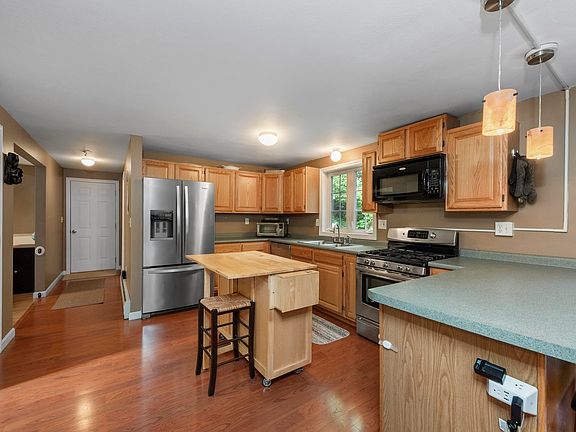 Country Location with Commuter Convenience! This sun drenched 3-bedroom Colonial sits on 1.3 acres at the end of a quiet, dead-end road, just 5 minutes from Exit 20 on I-93. Enjoy easy access to the Outlet Malls and area lakes while coming home to peace and serenity. Step inside to discover an open floor plan with a cozy gas fireplace in the living room, perfect for relaxing evenings. Spacious eat-in kitchen. The primary suite boasts a luxurious jet tub, and the finished walk-out basement features a storage room & a spacious family room with cozy gas stove, ideal for entertaining or unwinding. Outside, you'll love the private back deck and farmer's porch with seasonal mountain views, the perfect spot to enjoy the wildlife shows. The 2-car attached garage and efficient on-demand hot water make life here both convenient and comfortable. Trade long commutes for nature views and make this your forever home! Shown by appointment only. Offers are due by 10/2/2024 at 8:00pm.