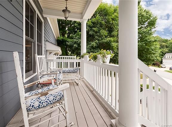 Gorgeous Arts and Crafts home in Biltmore Park with a lower level 2nd living quarters! Walkable and bikeable to shopping, dining, park, pool, and more. Year-round mountain views from the front upstairs bedroom and winter views from the covered, rocking-chair front porch. Chef's kitchen features granite counters, stainless appliances, breakfast bar, and a pantry. Spacious bedroom suite on the main level has a large walk-in closet, new carpet, crown molding, and a bathroom with a dual vanity, walk-in shower and a soaking tub. Plenty of space upstairs, including 3 beds, 1.5 baths, linen closet, and storage. Second living quarters has a separate entrance, 2 beds, bath, living, laundry, and kitchenette. Enjoy outdoor living on the sunny back deck. Fully fenced private back yard, mature landscaping, firepit, and connection to the Mountain-to-Sea Trail down the street round out the outdoor experience. Updates include fresh paint and new lighting and plumbing fixtures. See brochure and video.