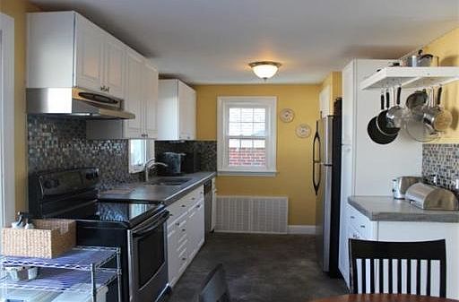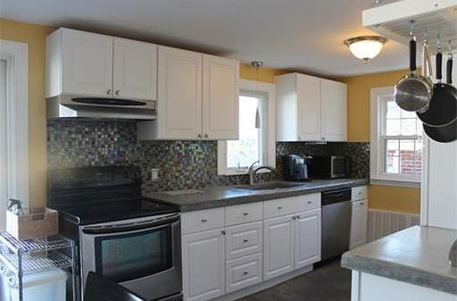 Warm and inviting, this Brick Cape with wonderful curb appeal has so much to offer. The living room has hardwood flooring, a beautiful fireplace, and plenty of natural light. Spacious dining room with newer slider to composite deck overlooks the wonderful level fenced in yard for children, pets, or privacy. Updated white cabinet kitchen with concrete countertops/floor is light, bright, and sure to win you over. Two good size bedrooms on first floor both with hardwood flooring and good closet space. The 3rd bedroom on the second level could be used as a master suite complete with hardwood flooring, sitting area, and built ins. Breezeway to one car garage and driveway with plenty of off street parking. The state of the art programmable thermostat can be programmed right from a smart phone or tablet to help keep costs down . Economical gas heat, recent Mass Save energy audit, and recent blown in insulation in attic. Close to major routes, shopping, and commuter rail.