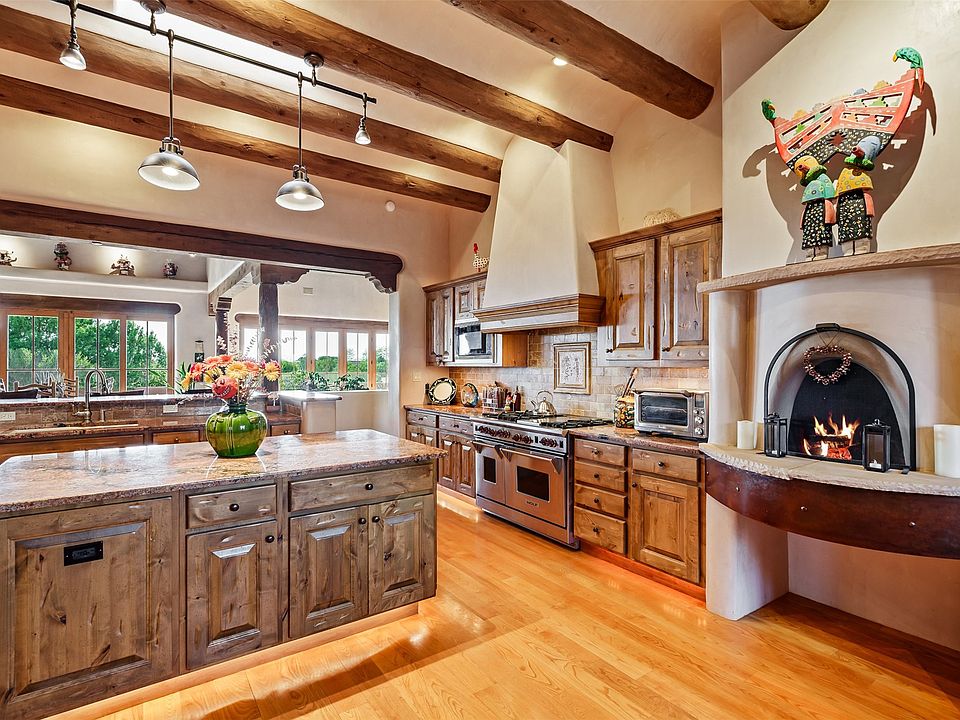 Large kiva fireplaceBuilt-in double deskWine coolerWalled courtyardSpacious officeSerene retreatSix-burner wolf range