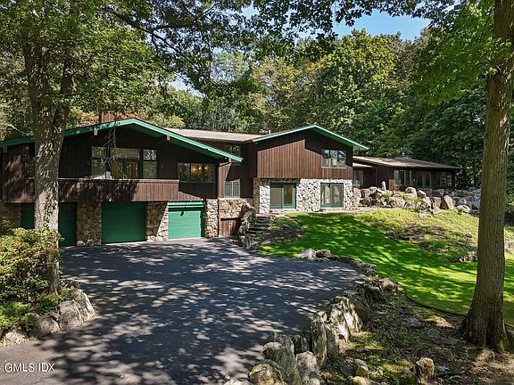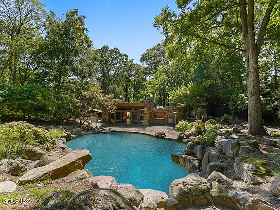 Sited on 5.3 private acres above Wilshire Pond, this move-in ready 7-bedroom modern country estate blends serene backcountry living with contemporary luxuries. Spend summers playing on the stadium-lit tennis court or relaxing with family and friends by the heated grotto-like pool with waterfall. Cozy up in the winter months enjoying water views from nearly every room in the main house or roasting s'mores in the guest house fireplace nook. This one-of-a-kind property is comprised of a beautiful and bright main house, an impossible-to-replicate stone guest house, and park-like grounds dotted with stone walkways. The main house features a large living room with fireplace, formal dining room, and a new gourmet kitchen with Wolf and SubZero appliances. The primary bedroom suite boasts a welcoming sitting room with fireplace, private balcony, and three walk-in closets. There are four additional en-suite bedrooms, a kids playroom, gym, study/office, and au-pair quarters. The awe-inspiring guest house is a masterpiece in stonework with a family room, living room, bedroom suite, media room, and kitchen with walk-up pool patio bar. This remarkable estate located on a prestigious backcountry Greenwich cul-de-sac is a hidden gem.