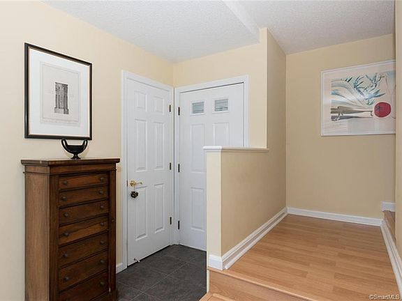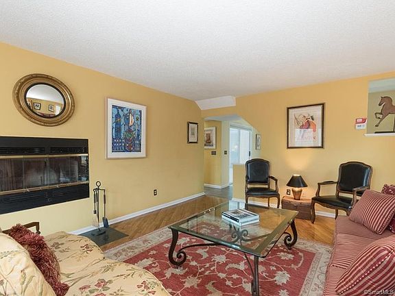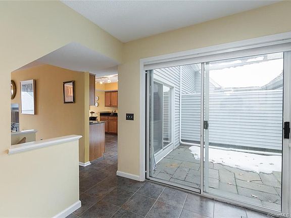 Meticulous, sun drenched and spacious town home in a prime walk to town location. The main level features an open floor plan with easy flow. The living room, with hardwood floors, also offers a wood burning fireplace. The kitchen, updated with granite counters and custom cabinetry, has sliders to the patio, ideal for dining al fresco. The adjacent dining room, also with hardwood floors, features a charming window seat. The large master suite is also on the main level, with vaulted ceiling, ample closet space, and large en suite bathroom. Upstairs you will find the second bedroom, full bathroom, and an office/3rd bedroom with skylights. The lower level offers a family room, laundry/mud area, walk in storage closet, and direct access to the one car garage. All in one of South Wilton's most convenient locations. 7 minute drive to Wilton train station with free parking. Walking distance to so many amenities: the vibrant restaurant scene, shops, movie theater, and the Norwalk River Valley Trail. Best of all, Wilton's award winning schools Easy living right in the heart of Wilton Please note pictures are from when owner lived there in 2019.
