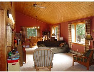 Private & Stunning Contemporary: Open Layout; Knotty Pine Cathedral Ceilings; Master Annex w/ deck, walk-in closet; Large Pantry & Laundry; Awesome Playset!; Garage w/Storage; Wood Stove; Martin Stream; Generator HU; and Large Screened Porch