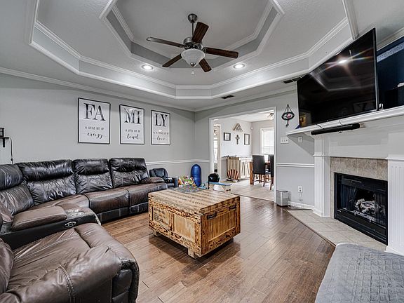 Don't miss this wonderful home in a great neighborhood. 4 bedroom 2 bath. Split floor plan & open kitchen area with lots of extra cabinet space. Big open Living room features double tray ceiling and fireplace. Large master bedroom & master bathroom featuring custom walk in tile shower with multiple shower heads, double vanity & walk in closet. Also a big laundry room with storage area. You'll love this HUGE back yard to entertain and plenty of room for pets.