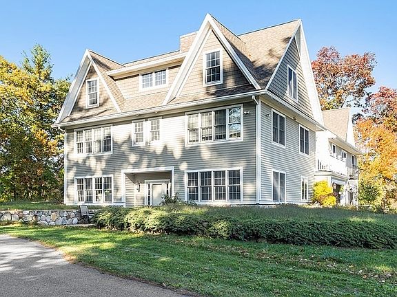 Stunning custom contemporary sited on a private lot, boasting modern amenities, close proximity to the town center and scenic views to Boston. Luxury abounds in this open concept home, offering multiple living options.  Beautiful kitchen w/ custom cabinetry, granite counters, island,Thermador fridge, Wolf range, Fisher & Paykel dish draws & dining area. Cozy family room with stone fireplace, adjacent to the first floor office and separate living room with coffered ceiling and french doors to the patio.  Second floor features two large bedrooms, each with their own full bath, an additional bedroom and full bath, plus a large two story room to suite your needs as a main bedroom suite, guest quarters, office, etc. Offering cathedral ceilings, spiral staircase to the loft, full bath w/ shower, soaking tub, multiple closets, exterior access to the lovely deck. Delight in the many features: roof deck, custom millwork, whole house generator, radiant flooring, views & more!  Home is here!