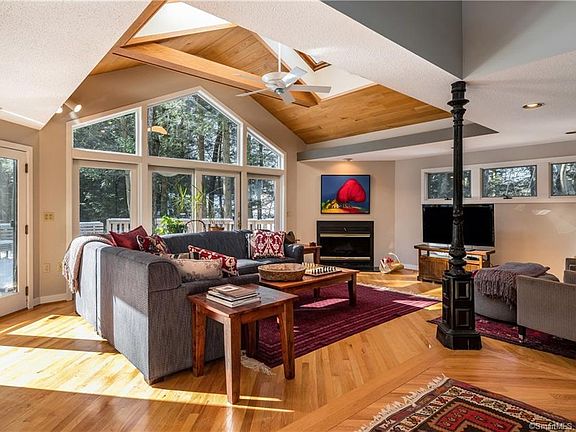 So much to love in this fantastic 11 room contemporary For starters it has an open concept floor plan with a fabulous great room addition that overlooks an incredible, level, yard. Sun streams in through walls of windows, French doors and skylights that highlight the beautiful wooden beamed cathedral ceiling. Whether gathering with friends and family around the fireplace, snuggling up with a good book in the reading nook or enjoying casual meals in the breakfast room the warmth in the heart of this home welcomes you. The kitchen features painted cabinetry, corian counters, stainless appliances & tiled backsplash. Sunlight fills the formal dining room which opens to a fireplaced living room with see through fireplace that's shared a cozy family room/den. A study built-ins and 1.5 baths complete the 1st floor. On the upper level four bedrooms & two updated baths include the master luxurious soaking tub for owners to relax & unwind in. The lower level provides a finished game/rec room 3rd fireplace. In summer and fall entertain outdoors on the sprawling deck and bluestone patio accented by flowering gardens. Trees line the tremendous level yard offering privacy for barbeques and plenty of room for ball games. Recent enhancements include walkway 2014, roof 2015, exterior painting 2015, LR, hall & MBR carpets 2015, interior painting 2016 & driveway 2018. All located in a cul-de-sac nbhd with access to Ethel Walker School offering 200 acres of hiking/skiing trails.