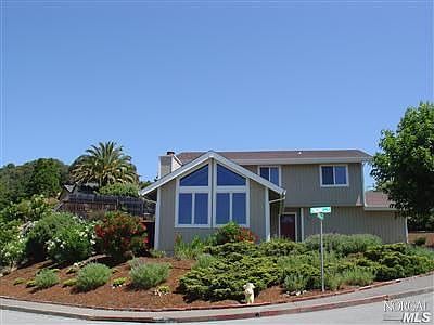 Sunny open floor plan with views. Fabulous custom granite kitchen, hardwood floors, exposed beams in living room, dual windows, remodeled tiled baths, private deck and yard-2 car garage.