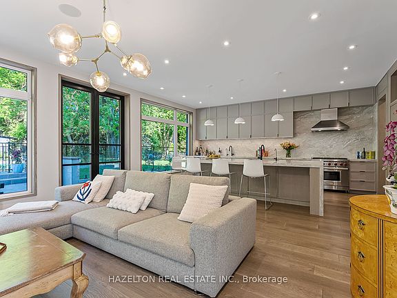 35 Worthington Cres could be the finest family home to come to the market in recent memory. Custom built and thoughtfully designed to provide simply outstanding family living, with joyful entertaining space and comfortable private spaces. One of the most desirable kid friendly streets in South Kingsway, this is a quick commute to downtown or to terrific shopping on Bloor or the Queensway. Lush landscaping with wonderful outdoor space including pool (fenced) and lots of patio space for bbq dinners. The heart of this home is the open concept kitchen /family room with a long centre island for morning coffee, and a walk in pantry, combined with welcoming gathering space with a wood burning fireplace, all accessible to the garden. A separate home office, plus a more formal living and dining area provide plenty of room for all. The 2nd floor is designed for kids with an open homework/play space, and three bedrooms, 2 baths and the laundry . 3rd floor is a serene treetop adult retreat. Primary bedroom/loft features an inviting sitting area, oversize walk in closet space decadent spa like ensuite, and a private rooftop patio for star gazing. The lower level provides plenty of playroom space, gym and a well sized nanny suite (4 piece bath). This is a home where family will flourish.