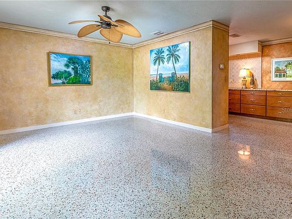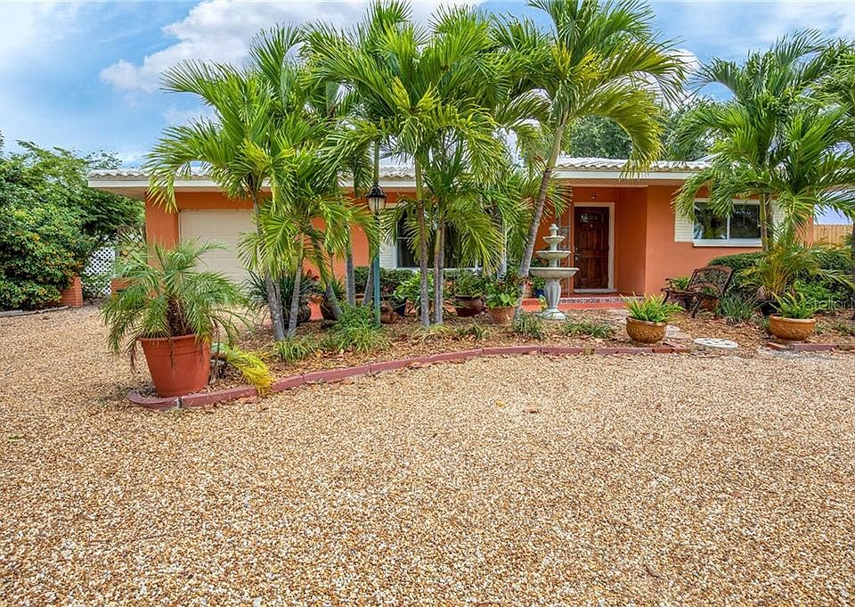 Nestled away in the popular St Pete Beach Belle Vista community is this 2 bed, 1.5 bath block home with garage and room for a pool, located just minutes from our top-rated, white sand beaches and amazing local fun. This beautifully landscaped home showcases the tropical paradise you've always dreamed of whether you are a full-time or seasonal resident. The 1,057 sqft open floor plan, designed to fit a combination of comfort, style and convenience, includes newly refinished terrazzo flooring, fresh paint, updated kitchen, new hurricane impact windows/sliders, and new light fixtures. Natural light flows through each bedroom. The screened lanai is the perfect spot for relaxation, with views of vibrant native and tropical palms, nature, and serene greenery. Conveniently located near many great local shops, beachfront dining, and lots of entertainment to enjoy. Providing quick highway access and quick commute to Tampa/Clearwater International Airport.