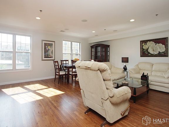 1164 SF 2 bedroom, 2 bathroom condo for rent with elevator, balcony and garage parking included! With Southern exposure and lots of windows, this corner apartment is always filled with sunlight. Features include W/D in unit, central AC and heat, dark hardwood floors, crown molding, recessed lighting, built in surround sound speakers and ceiling speakers in the living room and master bedroom, kitchen with granite counters and stainless steel appliances including a gas range. Centrally located in midtown Hoboken at 7th and Grand Street with easy access to the bus to NYC and 15 minutes from the PATH. Available 9/1/2019.