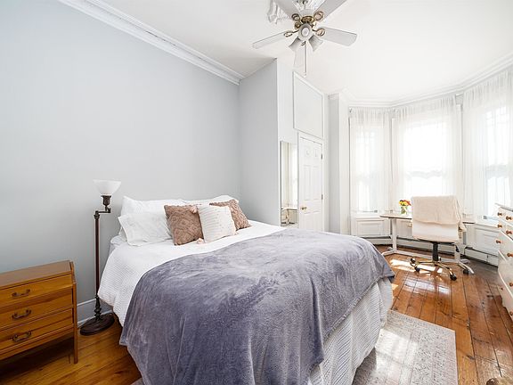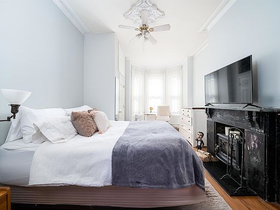 Historic charm in this 1 Bed + Den, 1 Bath condominium, located in the desirable Hamilton Park neighborhood of Downtown Jersey City conveniently located near PATH stations, parks, cafes, and restaurants. This historic condo features a stunning aesthetic facade which was completed in 2017. As you walk through the original wooden doors you are met by Art Deco light fixtures and gorgeous designer ceramic tile. This unit features period details including antique wide plank pine floors, plaster ceiling medallion, exposed brick, pocket door, antique soapstone fireplace mantle with working wood burning stove, crown molding, high ceilings, and large bay window. Other notable features; this unit has windows on 3 sides that fill the space with natural light. Walk into your open concept living and kitchen space; off the living room is a perfect den or office with closet that leads into your spacious bedroom.