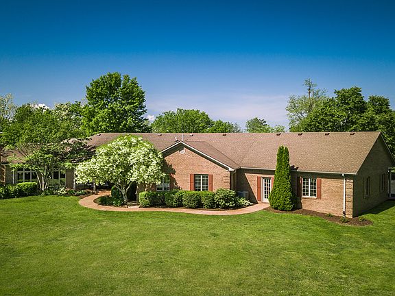 Spectacular, one of a kind - open floor plan, custom ranch with recent complete remodel. Beautiful scenic views overlooking and abutting Bright Leaf Golf Course and rolling Bluegrass vistas. VIEW VIRTUAL TOUR below at bottom of facts list. This sprawling 3550 Sq.Ft. (Approx.), 5 Bedroom, 3.5 Bath, one level, ranch with 9ft. ceilings throughout boasts numerous amenities. The Kitchen and Laundry abound with spaciousness, granite countertops and stainless steel appliances. The Master Suite utilizes approx. 550 Sq. Ft. to accommodate impressive separate, his and her baths, with an amazing Walk-thru Master closet located between. Not to be upstaged, the enormous Living room with 10ft. tray and Breakfast Nook showcase over eighty continuous feet of Anderson casement windows for exceptional viewing. No cabin fever in this house! The Living room is accentuated with exquisite lighting and a gas/wood fireplace. An additional second gas fireplace is located and warms the spacious Theater/Entertainment /Media room. Located on Approx. 3 acres, just minutes to shopping in Harrodsburg or Danville, this home can accommodate large families or entertain multiple guests with grace and ease of a fine retreat on your own private get-away. This truly is a place you look forward coming home to, even after an excursion away. The Mechanicals are updated with Geothermal and Hybrid Natural gas/heat-pump HVAC's. The Geo system is attached to Rheem-Marathon hot water tanks for efficiency. LED lighting completes the high-efficiency, low cost utilities for exceptional monthly bills. Through an oversize attached garage, with abundant storage, you exit to an outside oasis of nature and wildlife. This parcels external amenities include; winding aggregate sidewalks adorning the landscaped exterior, two large patio/porches, stocked pond with aerators, 76 x 36 Morton workshop/garage, asphalt driveway and outstanding green space. Only two homeowners have had the opportunity to own this home. Make this one a priority to see and experience the quality of life few get to own in their lifetime.