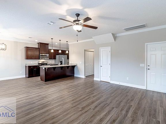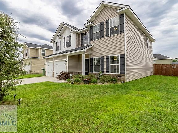 Welcome to this beautiful two-story home! The ground floor features a formal dining room, an open concept living area with a fireplace, and a well-appointed kitchen boasting a peninsula and eat-in space – all with durable laminate flooring. A convenient downstairs bedroom and full bathroom complete the main level. Upstairs, discover the expansive main suite with a private bath offering dual sinks, a garden tub, a separate shower, and a generous walk-in closet. Three additional bedrooms, another full bathroom, and the laundry room are also located upstairs for ease. Enjoy the outdoors with an extended back patio, a handy storage shed, and a fully fenced-in backyard. This home is close to Ft. Stewart, entertainment, shopping, and dining. Schedule your showing today!
