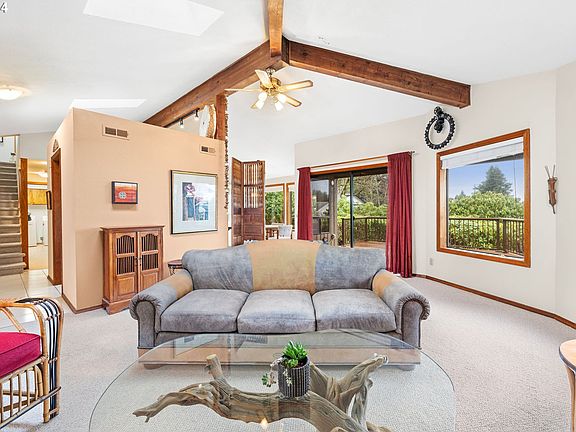 Here's the home you've been looking for at the price you've only dreamed of. This well-built gem gives you the privacy you want, sitting up in the hills, on a dead-end street, and gives you a long distant view of the ocean. Generous living space with two master suites - one up and one down, a big newer deck over the fully fenced yard, manicured landscaping boasting more than 20 brightly-blooming (seasonal) rhododendron bushes. You'll enjoy the space provided with a 3-car garage and detached ready-to-work office space. Stop thinking about it and get moving to the beautiful Oregon Coast!