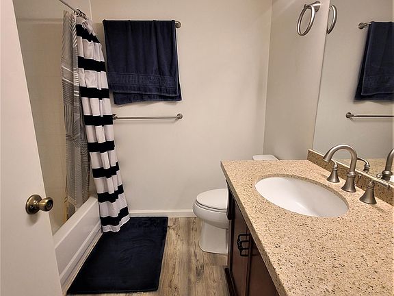Newer flooring, lights, kitchen and bathrooms. Large window AC in living and window AC in master. Washer and Dryer in unit. Building ammenities include BBQ areas, playground, resident Manager, security and beautifully kept grounds.
