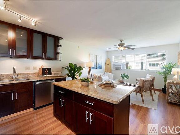 Live the Kailua dream! You can rent your very own little slice of paradise in this updated 1 level 1 bed/1 bath unit with open gourmet kitchen! Comes with a parking spot right next to the unit (just 1 flight of stairs up) plus a storage unit too! Elevator, lots of guest parking, community BBQ area, kids playground and laundry in the unit are all additional features to love about living here. Love to walk everywhere? Located in the HEART of Kailua town you can walk to 6 different grocery stores including Whole Foods, great restaurants, the local bakery and coffee shops, banks and other great shopping. And talk about convenience, there is even a private gate JUST for Koolau Vista residents that cuts straight through to Target! Best of all, Kailua's world famous beach is just a 5 minute bike ride or a 20 minute easy walk from your front door! Water is included, but electricity and internet are not. Don't miss this one!! Registered Service Animals only. Renovated 1 bed 1 bath apartment in Kailua's highly sought after community located behind Target! Renovated & Large full kitchen (rare find!). Walking distance from: - Target - Whole Foods - UFC Gym - Core power yoga - Kailua beach park - Weekly farmers markets (& much more!!) 15 minute drive to MCBH, low traffic route! 1 reserved parking spot included, and additional street parking is first come first serve. There is guest parking for any company you have, as well. Comes with attached storage unit and in-unit washer and dryer! Private message to schedule a viewing today! Water is provided, electricity and internet paid for by renter. Registered Service Animals only. First month's rent and security deposit due at signing. Renter is responsible for all fees due to HOA infractions. In-person viewings start in September. Available October 1st!