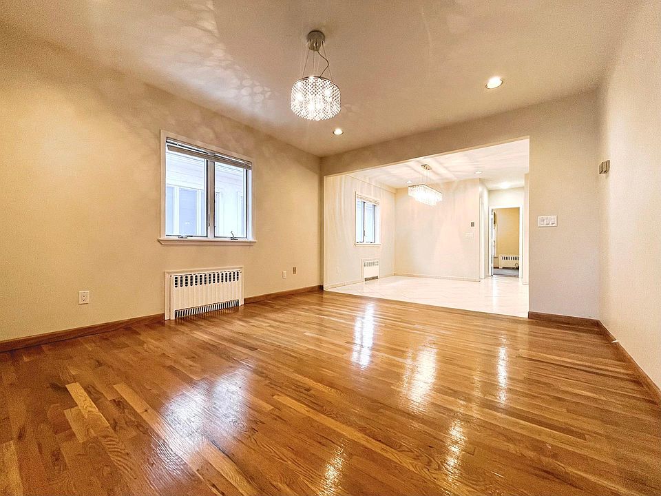 Bright and gorgeous 3 bedroom with 2 full bathrooms in unit. The unit features eat in Kitchen, with dishwasher stainless steel appliances and installed AC unit. Elegant and modern chandelier above dining table. Large living room with beautiful lighting. There is a large queen size bedroom and full size bedroom in backend of the apartment, both rooms have a large closet. First bathroom features modern tiles and bathtub. The master bedroom has two large closets, private full bathroom with washer/dryer hook up! A/C is already installed in master bedroom. The unit has private entrance. Close to shopping and transportation, F train in close proximity. No pets. Cold water included only.