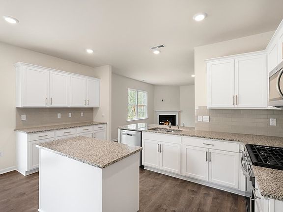 Welcome home to the stunning Wilmington Plan in our newest community, Baker Farm! Almost 3/4 Acre Corner Lot! The Rocking Chair front porch is a warm welcome, greeting you with all the southern Charm. Entering through the Foyer, you will fall in love with the 9ft ceilings and Revwood laminate flooring throughout main living areas! Work From Home? Enjoy the private dedicated office with Beautiful glass panel French doors. Upgraded Kitchen Featuring Whirlpool Stainless appliances, Granite Countertops, Ceramic Backsplash, and so much more! Whether Enjoying morning coffee in the breakfast room, or hosting a Dinner party in the formal dining, your guests are sure to be impressed! Sliding glass door leads outside to your elevated Deck overlooking your peaceful backyard setting. Upstairs, you will find four HUGE Bedrooms, all with Walk in Closets! Retreat to the Luxurious Owner's Suite with Vaulted Ceiling, Double Vanity, and oversized Shower. This home comes with a one-year builder's warranty & a ten-year structural warranty, PLUS Smart Home Package! Pictures for Representation purposes only.