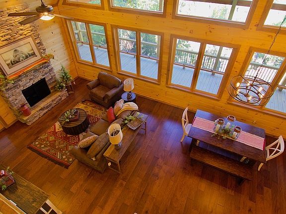 Stunning New Construction Cabin in Aska Adventure Area... close to historic downtown, USFS trails & end of road privacy...craftsman quality with rustic flair & distinct detail...3-4 bedroom/3.5 bath style cabin is perched on large wooded tract with towering hardwoods & lush, gentle landscape, lavish living area boasts sky high ceilings & "wall of glass," massive stone fireplace in great room, unique & warm industrial finishes, plentiful windows, custom cabinetry w/granite counters, tile showers & baths, upscale fixtures & extras throughout...Large sleeping loft can be used as 4th bedroom, dual hvac system, finished terrace level w/wet bar, den/rec room with fireplace & guest qtrs, oversize "party porch" features fireplace & relaxing layered mtn views, multi levels of porches & decks are great for outdoor entertaining, easy access circle with plenty of parking, surplus storage, gated upscale rustic community w/ultimate privacy & deeded Big Creek access via commons area with swings & picnic pavilion...this one truly has it all! Tasteful furnishings & accessories in place at additional price for a turn key deal!