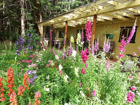 This home is set back off the road for privacy & offers a seasonal creek & ample space for outdoor living. Certified Wildlife Habitat by the National Wildlife Federation in 2017, fostering a haven for birds and pollinators. Mature fruit trees including Granny Smith apples, Bing cherries, Japanese plums, & Thundercloud plums, alongside established herb gardens & vibrant perennial flowers. Two wells on the property, one producing 20 GPM & the 2nd currently not in use is 4 GPM (per seller). The home was updated in 2017 with the following: 30-year roof, 48x12 covered front deck with stairs and ramp for easy access, primary bathroom updated with new vanity, tub/shower, faucets, toilet, subfloor and LVP flooring.